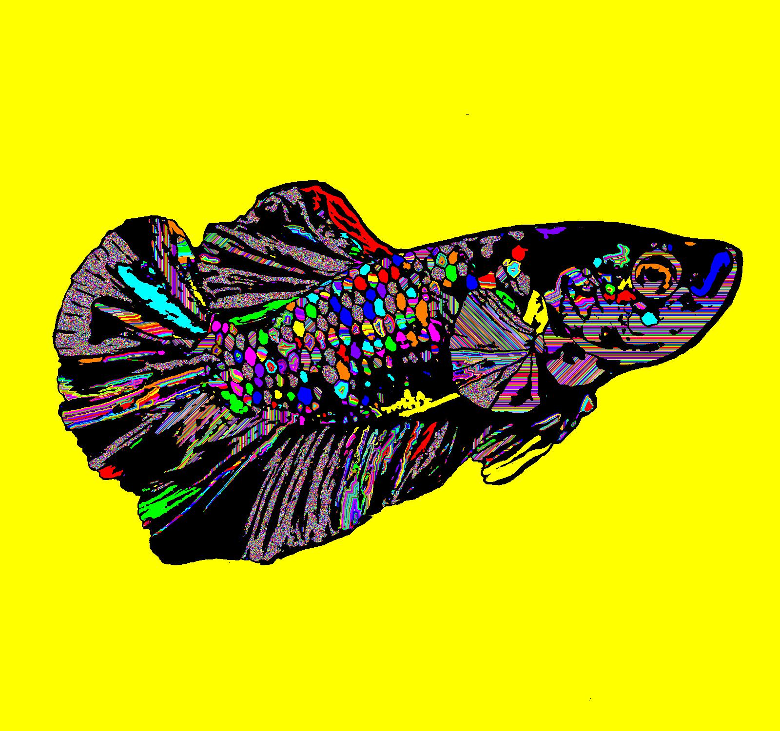 Young Plasma Facing Right With Black Outline On Yellow Background With Mixed Pattern.