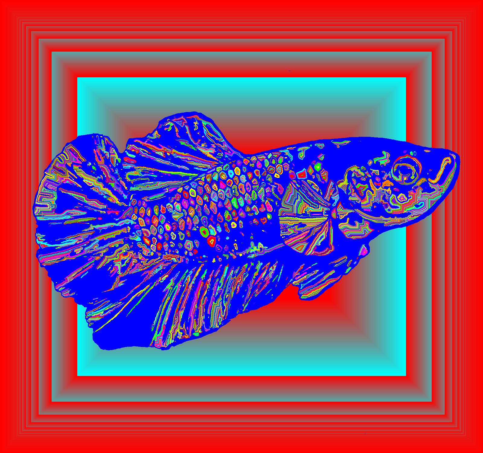 Young Plasma Facing Right With Blue Outline On Multisquare Red Background With Edge Pattern.