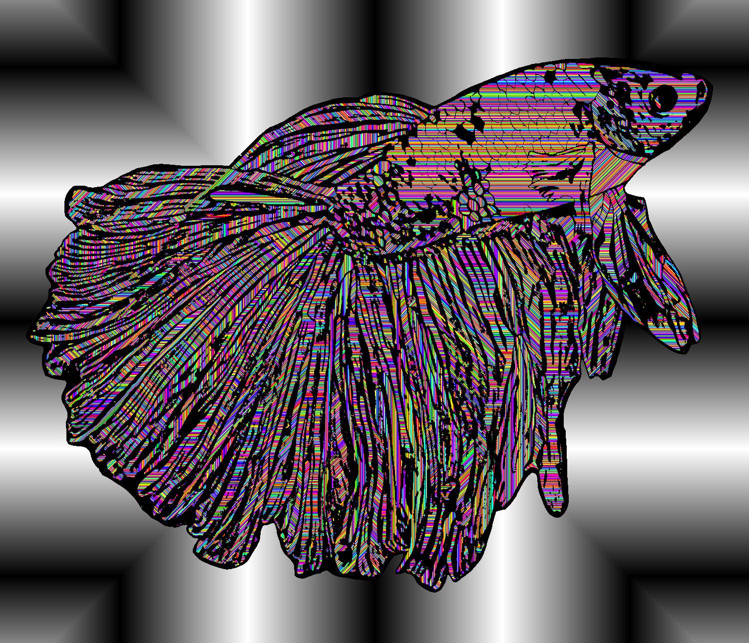 Leo Facing Right With Black Outline On Plus Black Background With Stripe Pattern.