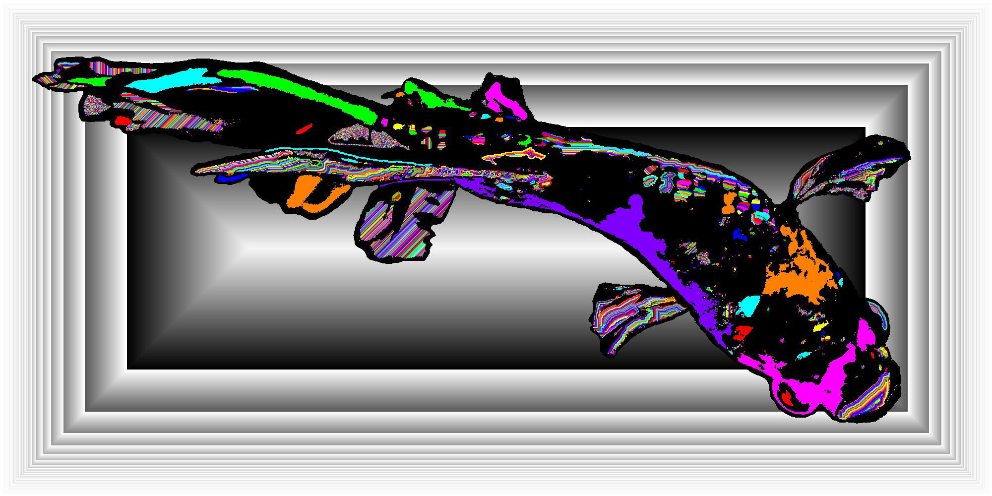 Leo From Above With Black Outline On Multisquare White Background With Mixed Pattern.