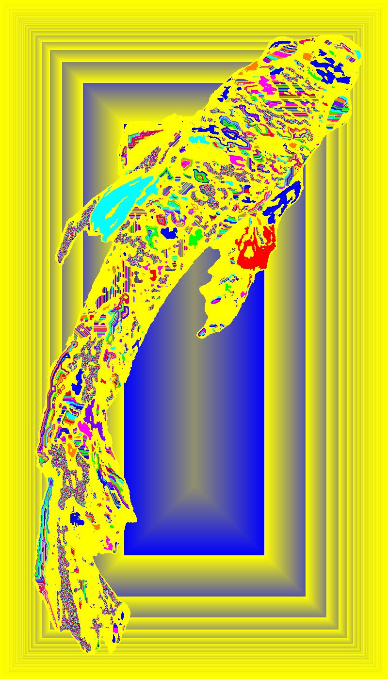 Plasma From Above With Yellow Outline On Multisquare Yellow Background With Mixed Pattern.