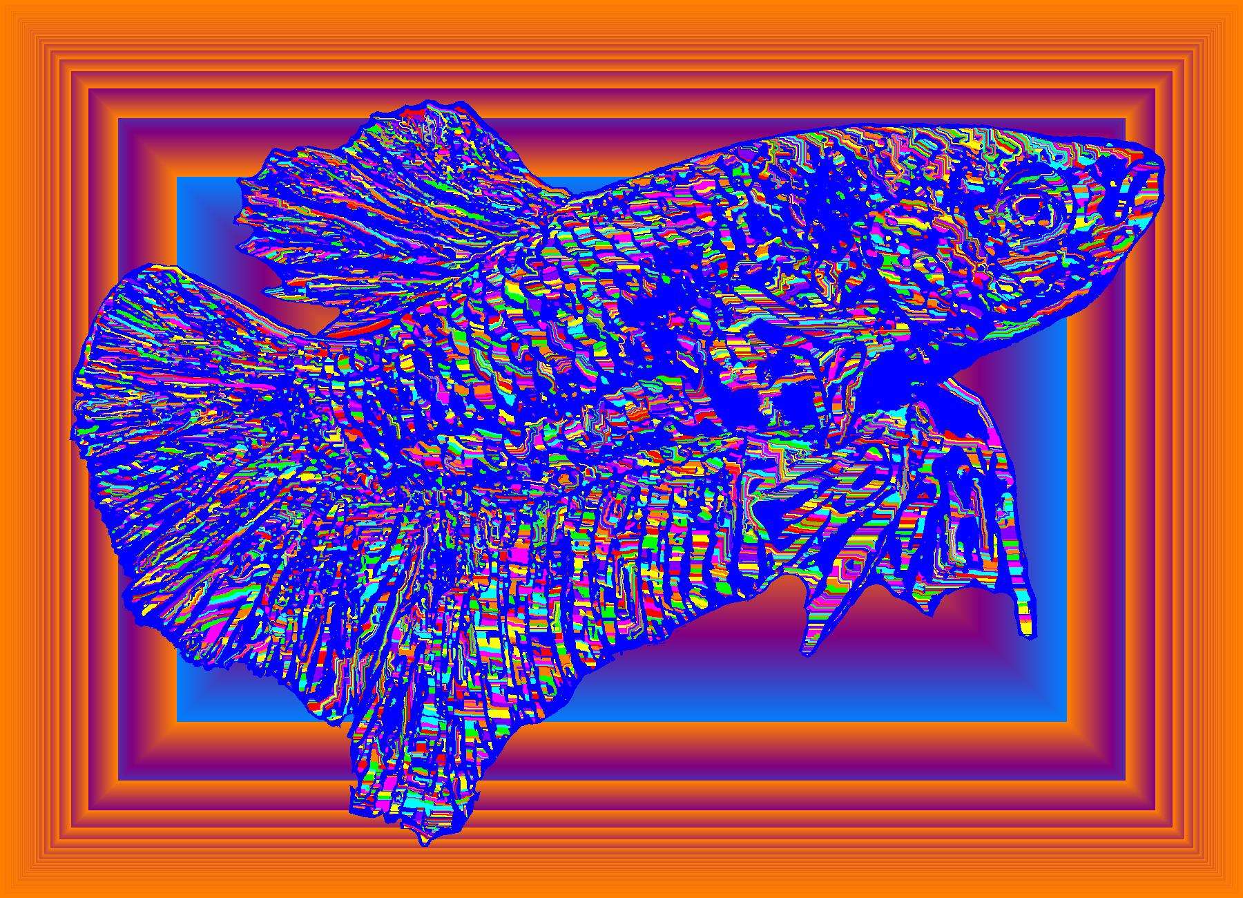 Older Plasma Facing Right With Blue Outline On Multisquare Orange Background With Snake Pattern.