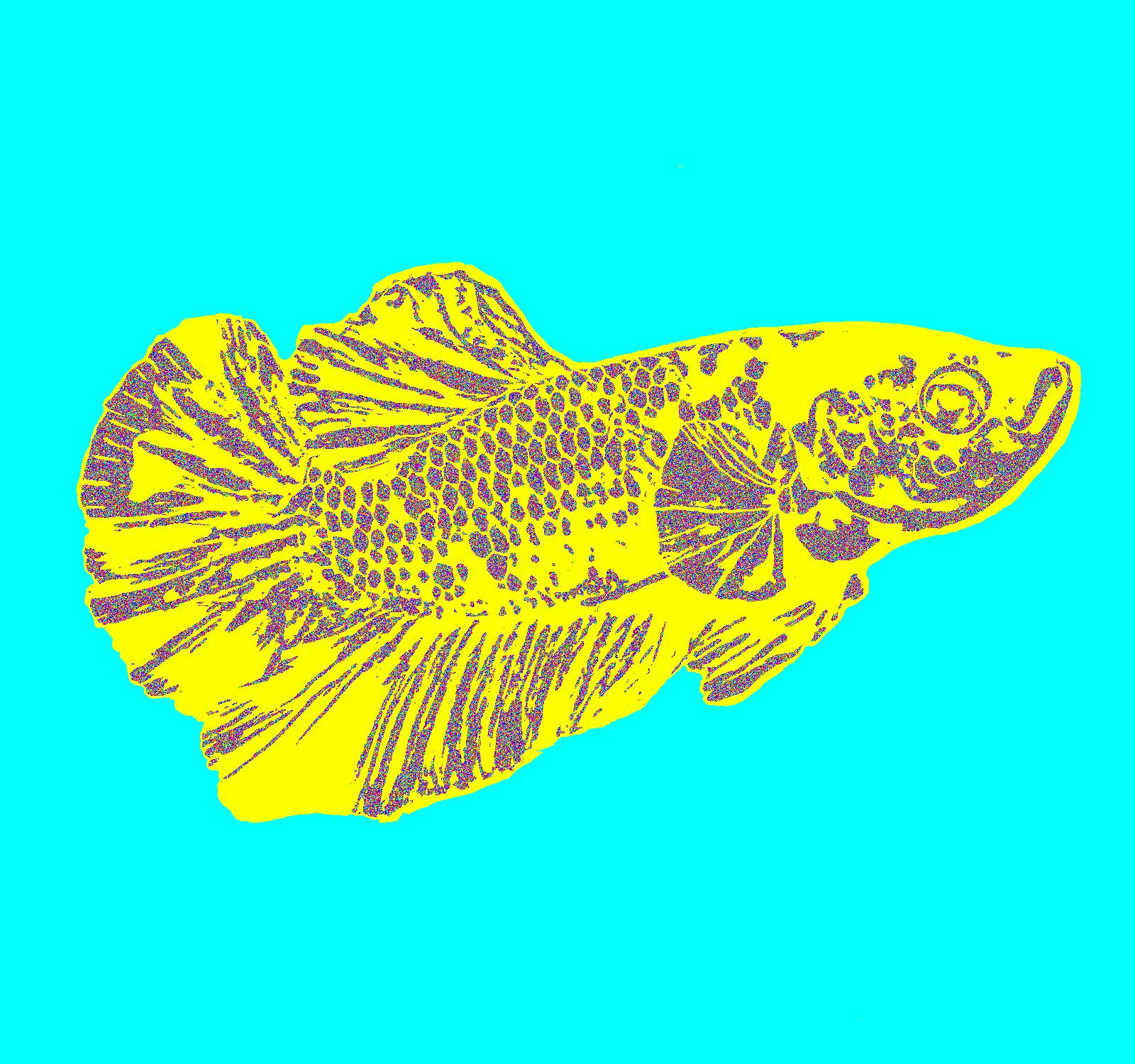 Young Plasma Facing Right With Yellow Outline On Lightblue Background With Noise Pattern.