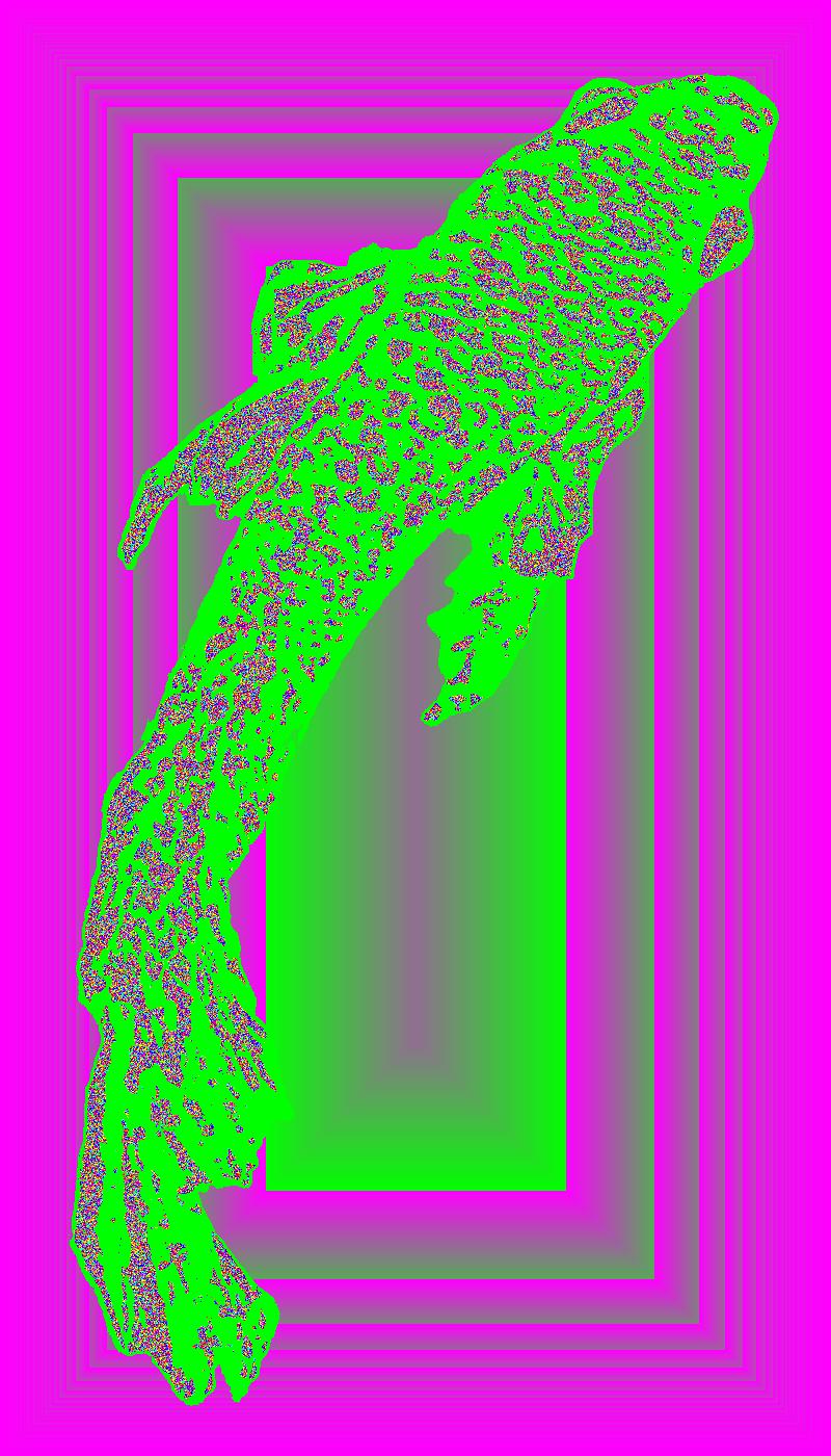 Plasma From Above With Green Outline On Multisquare Pink Background With Noise Pattern.