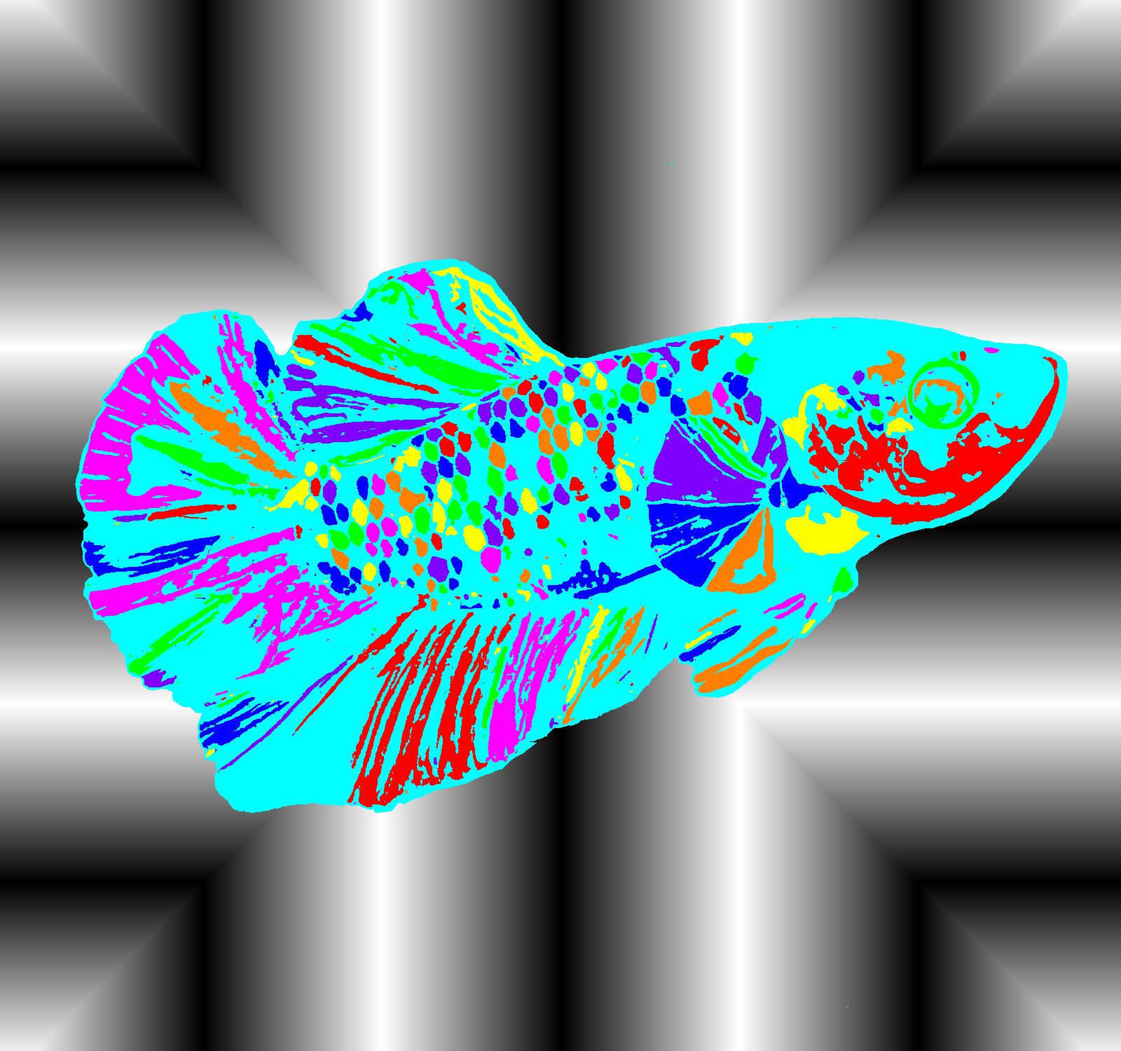 Young Plasma Facing Right With Lightblue Outline On Plus Black Background With Fill Pattern.