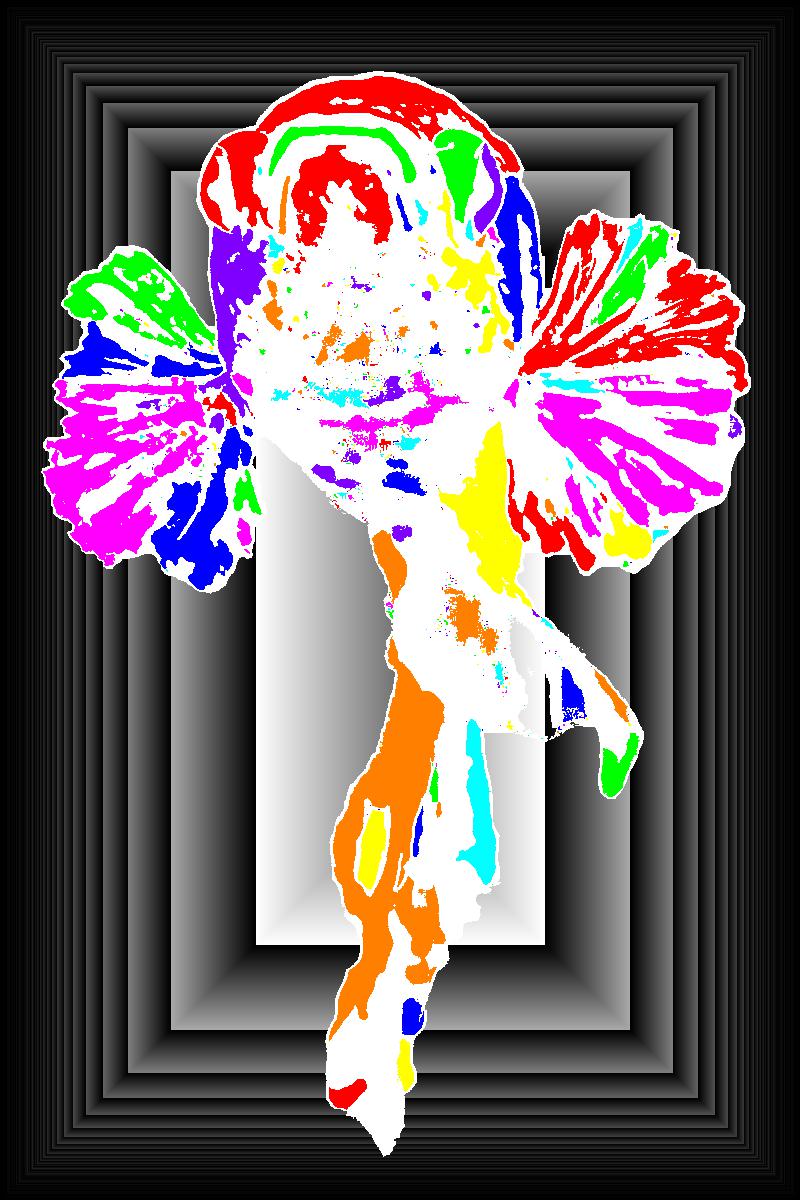 Plasma Frowning With White Outline On Multisquare Black Background With Fill Pattern.