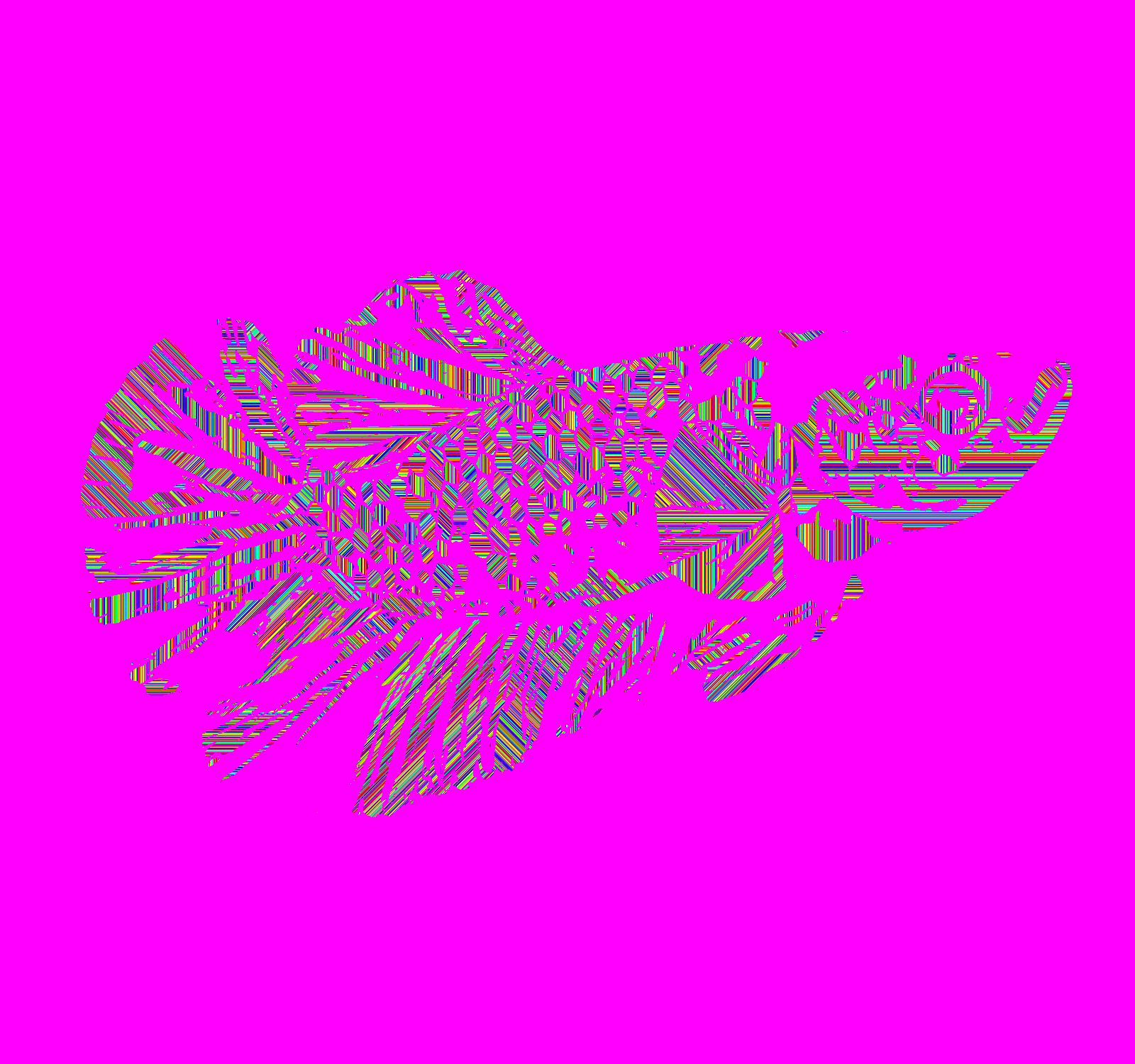 Young Plasma Facing Right With Pink Outline On Pink Background With Stripe Pattern.