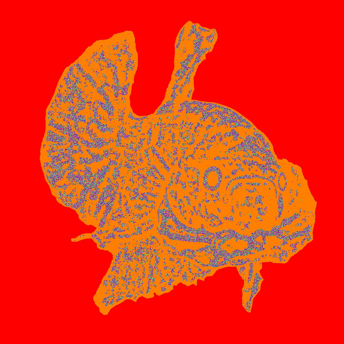 Plasma Flaring With Orange Outline On Solid Red Background With Noise Pattern.