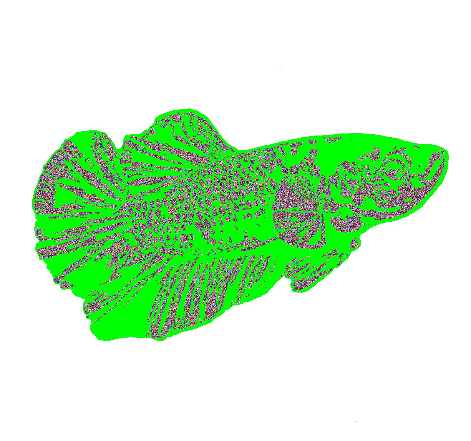 Young Plasma Facing Right With Green Outline On Solid White Background With Noise Pattern.