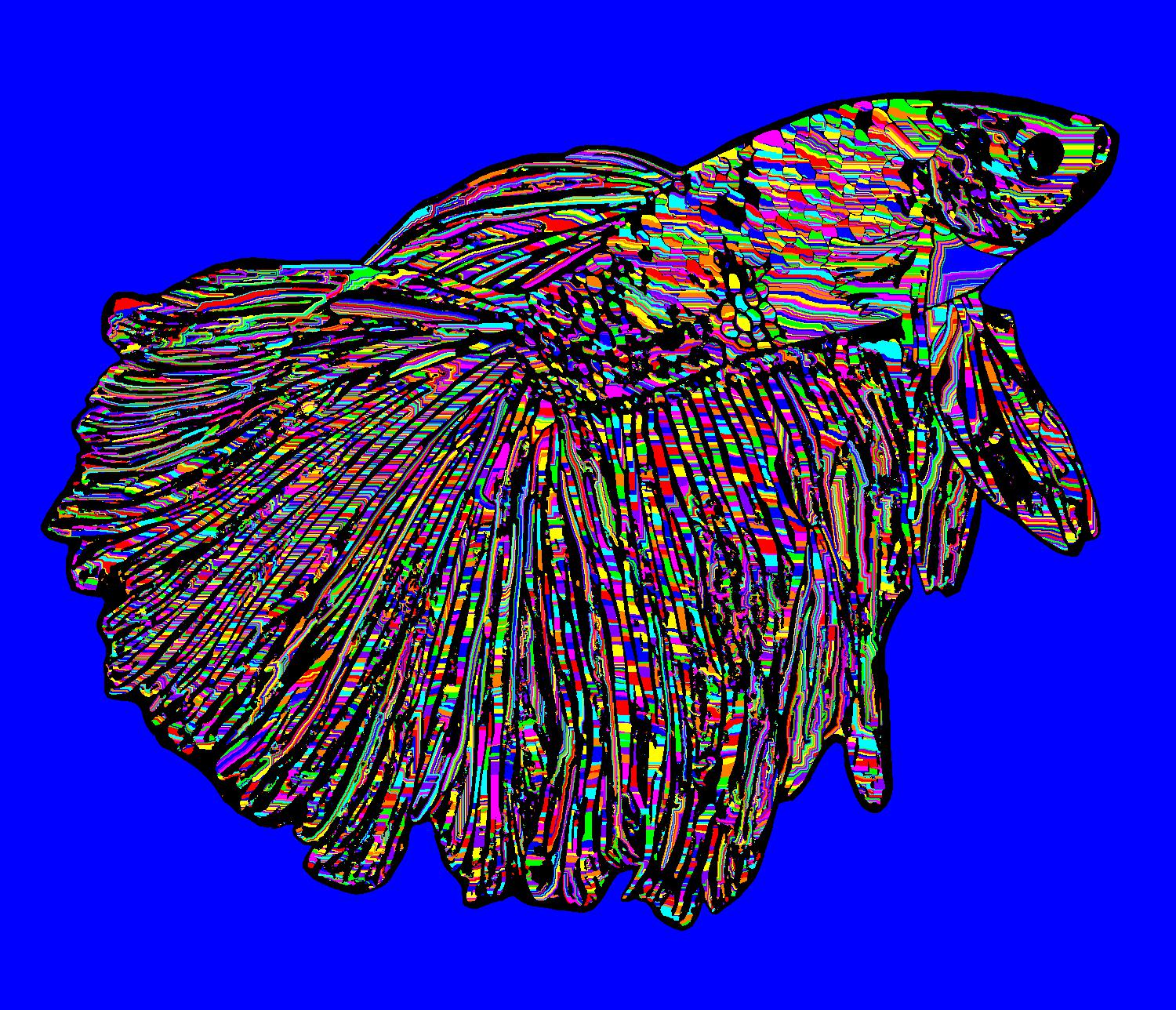 Leo Facing Right With Black Outline On Solid Blue Background With Snake Pattern.
