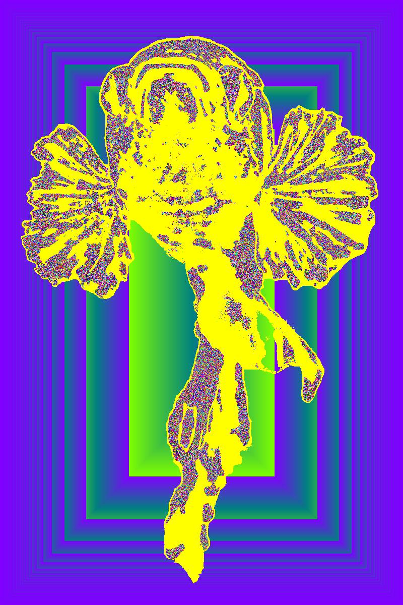 Plasma Frowning With Yellow Outline On Multisquare Purple Background With Noise Pattern.