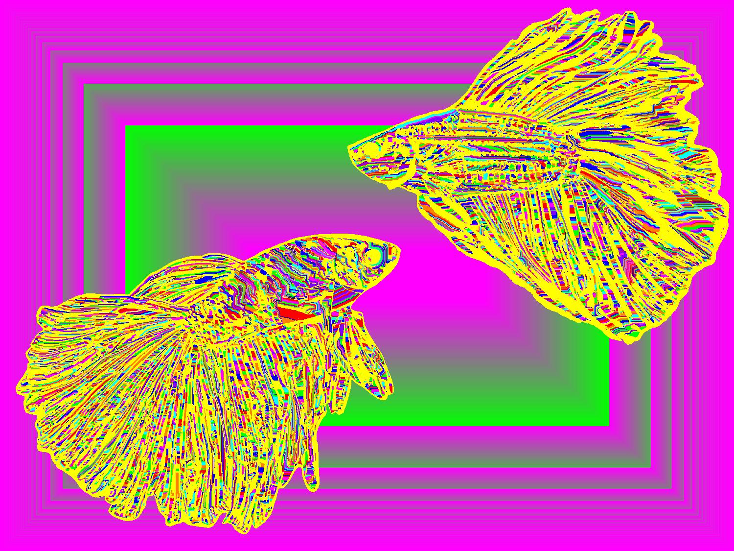Leo And Flare With Yellow Outline On Multisquare Pink Background With Snake Pattern.