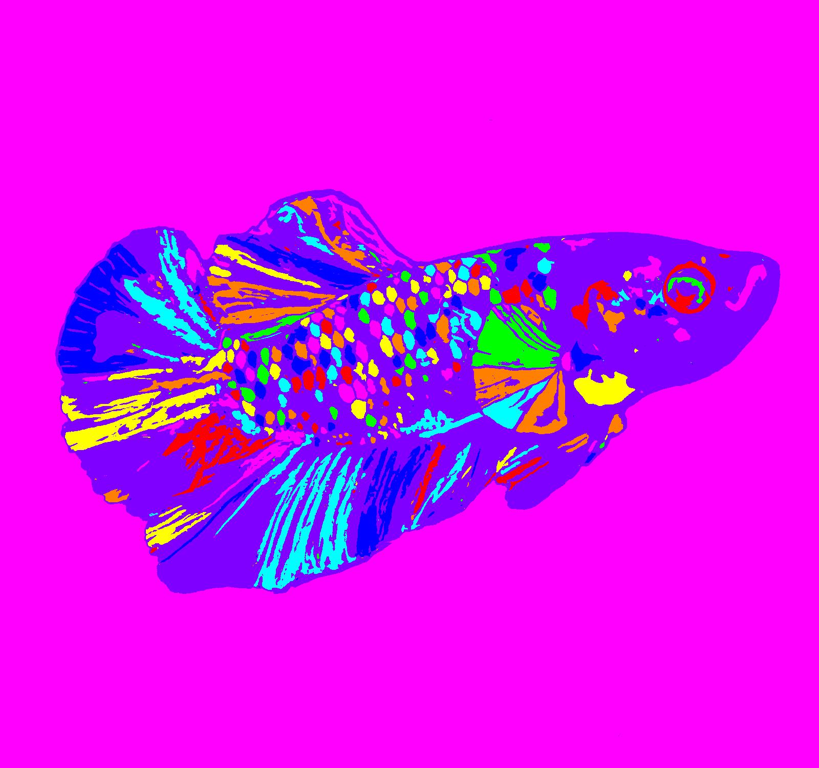 Young Plasma Facing Right With Purple Outline On Solid Pink Background With Fill Pattern.