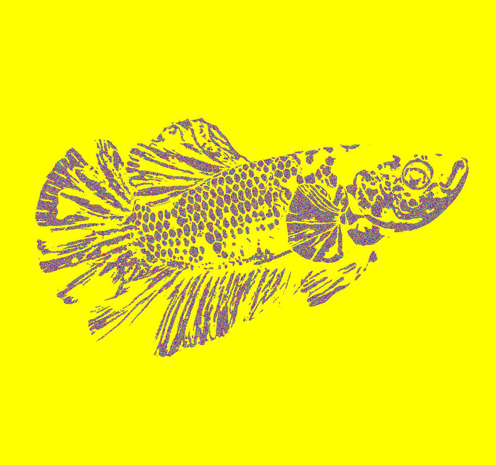 Young Plasma Facing Right With Yellow Outline On Solid Yellow Background With Noise Pattern.
