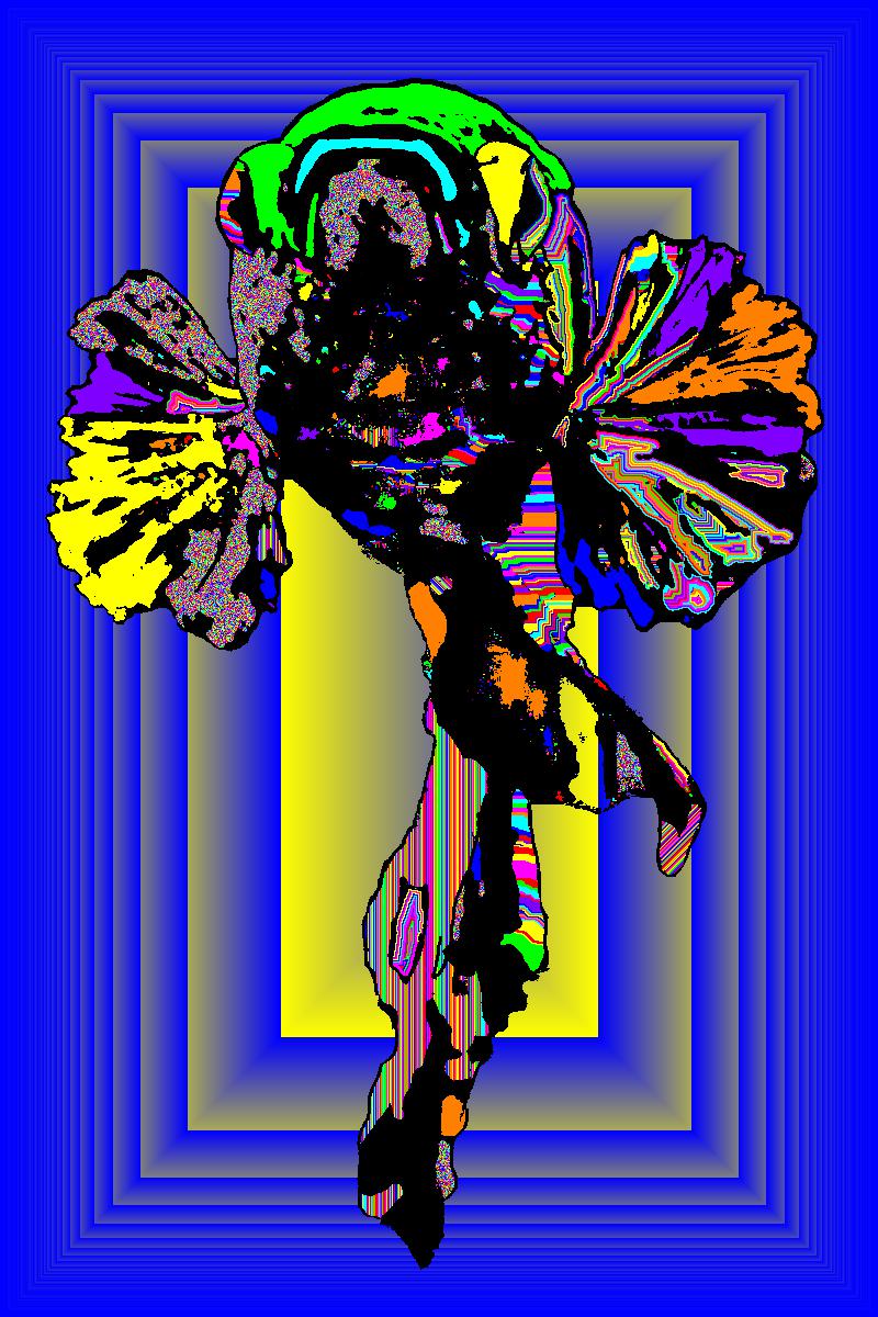 Plasma Frowning With Black Outline On Multisquare Blue Background With Mixed Pattern.