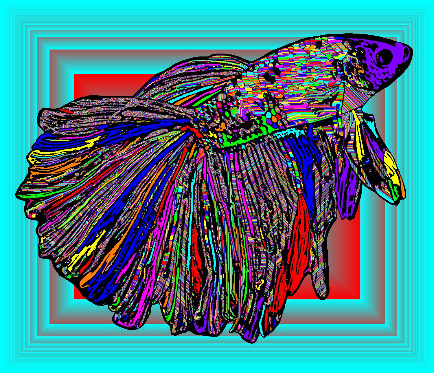 Leo Facing Right With Black Outline On Multisquare Lightblue Background With Mixed Pattern.