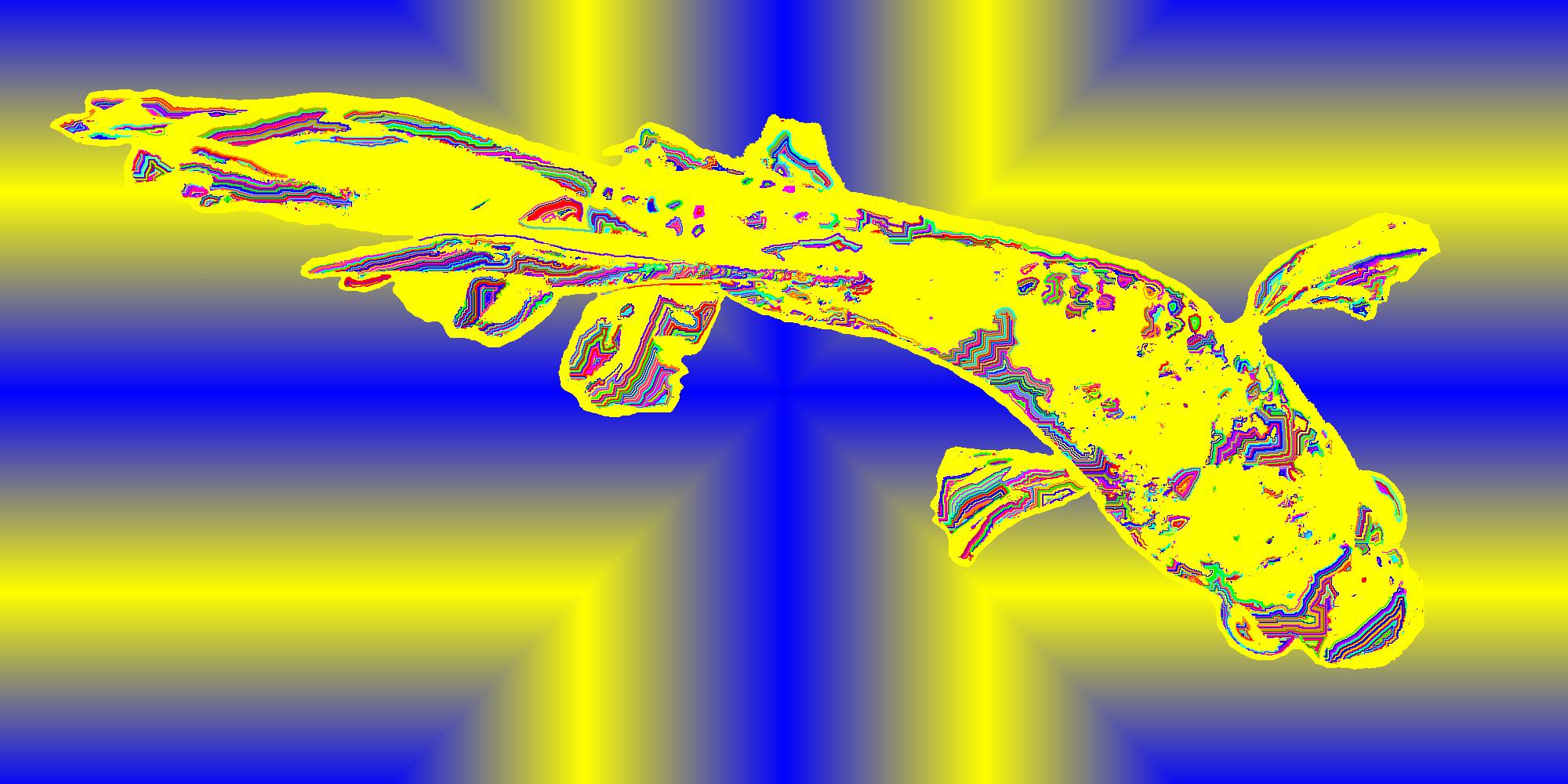 Leo From Above With Yellow Outline On Plus Blue Background With Edge Pattern.