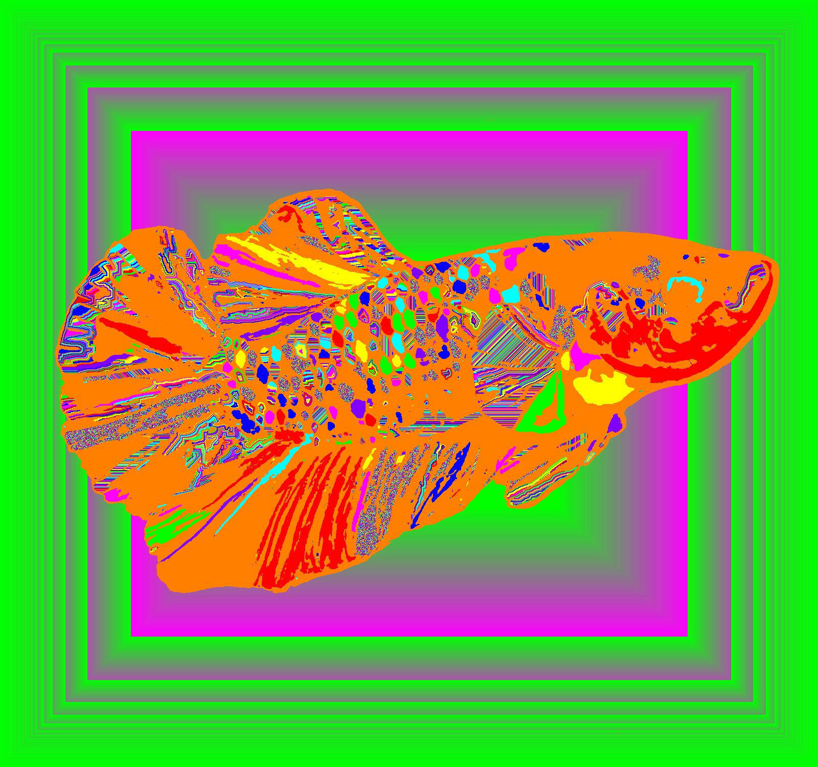 Young Plasma Facing Right With Orange Outline On Multisquare Green Background With Mixed Pattern.