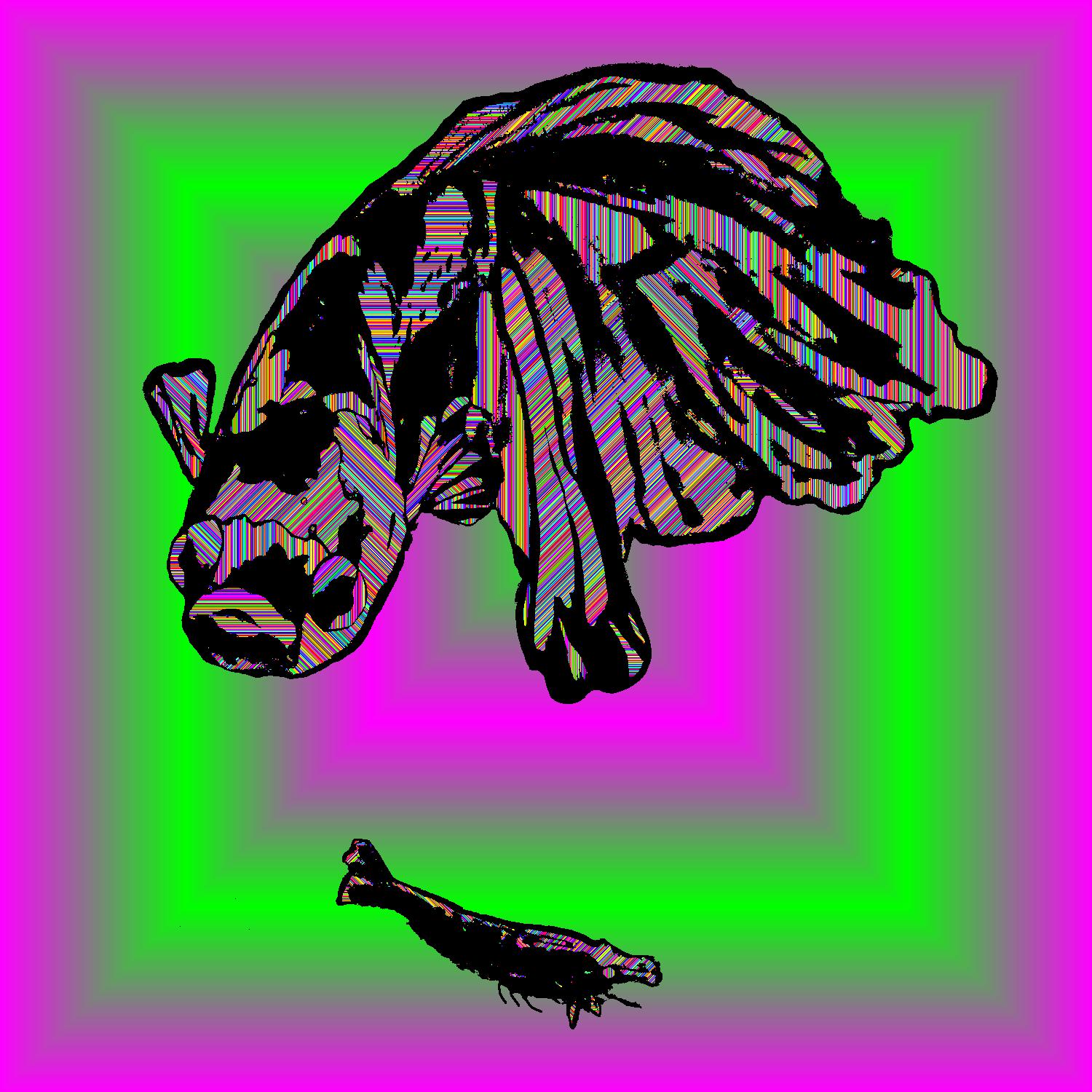 Leo Angry At Shrimp With Black Outline On Halo Pink Background With Stripe Pattern.