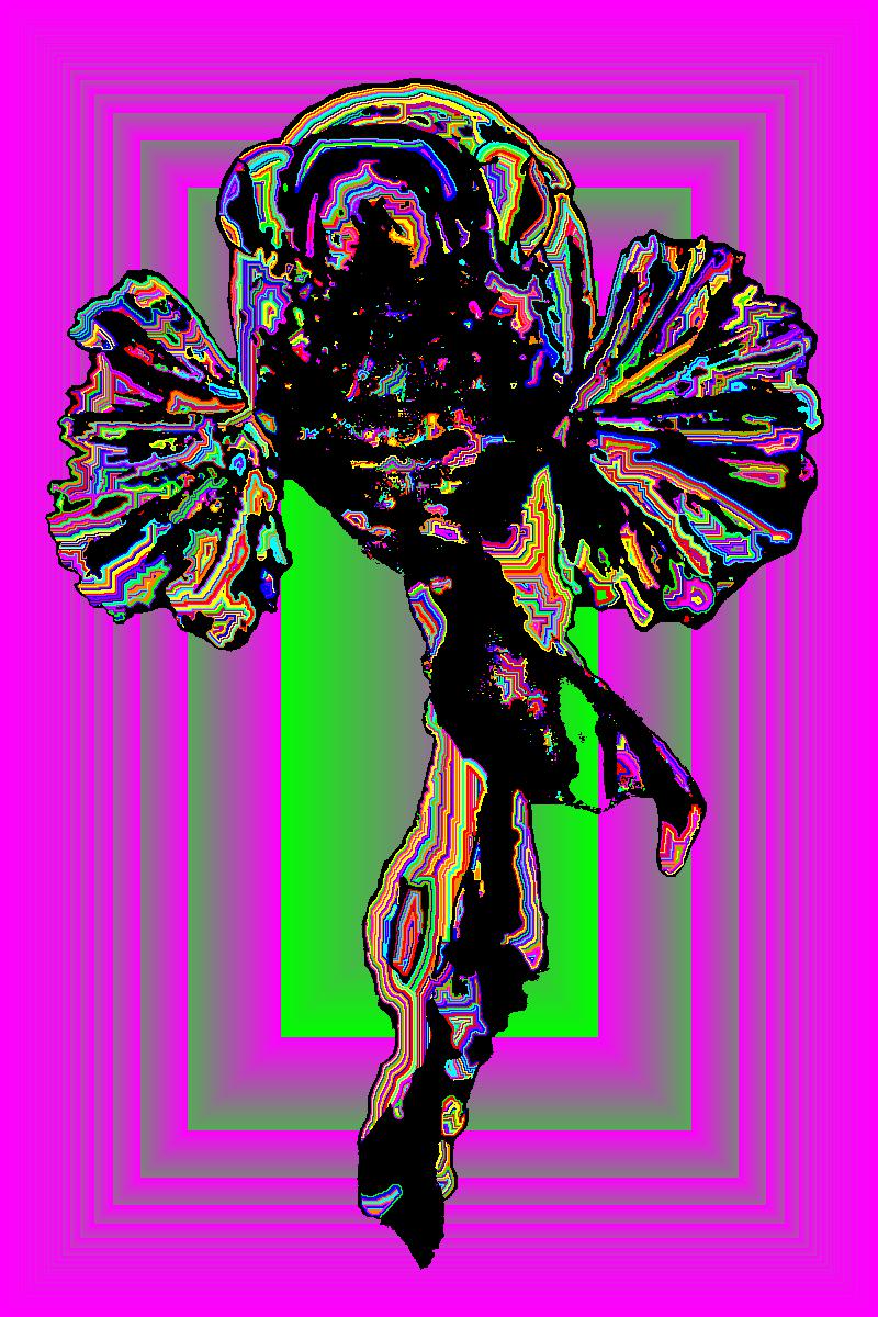 Plasma Frowning With Black Outline On Multisquare Pink Background With Edge Pattern.