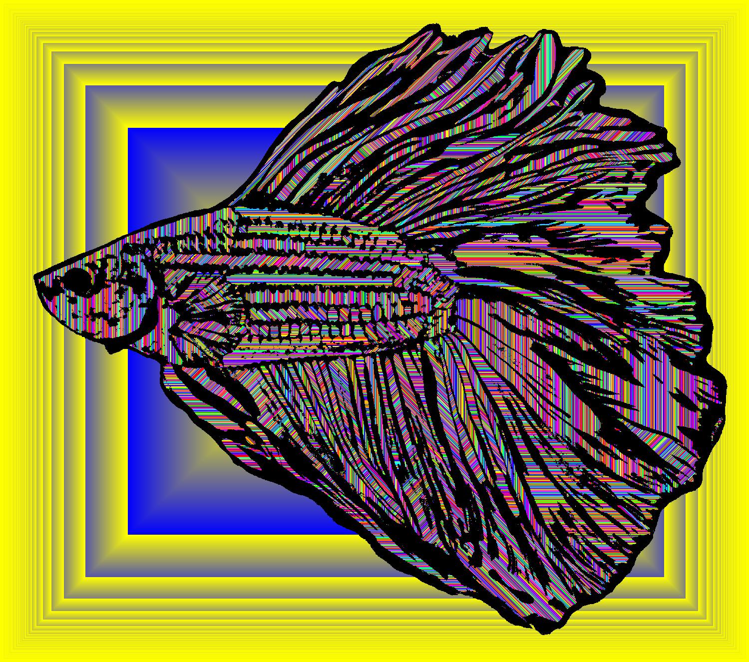 Flare Facing Left With Black Outline On Multisquare Yellow Background With Stripe Pattern.